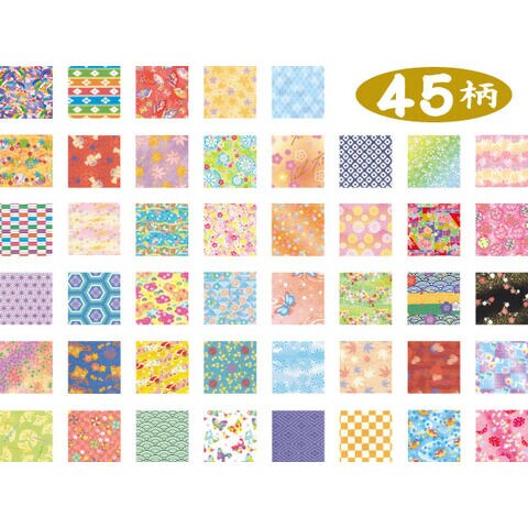 ◆豊富に取り揃えた45柄の千代紙が保存に便利なケースにセットされています。