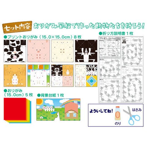 ◆牧場背景シート付きで、かわいい動物を折って飾ろう!