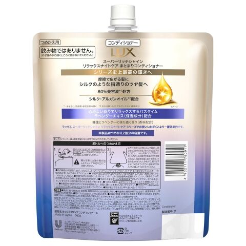 ユニリーバ・ジャパン LUX スーパーリッチシャイン リラックスナイトケア まとまりコンディショナー つめかえ用 560g ラSRリナCDカ56 【返品種別A】