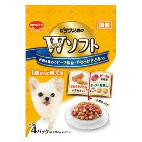 日本ペットフード ビタワン君のWソフト 成犬用 お肉を味わうビーフ味粒・やわらかささみ入り 200g VWソフトセイケンビ-フササミ200G 【返品種別B】