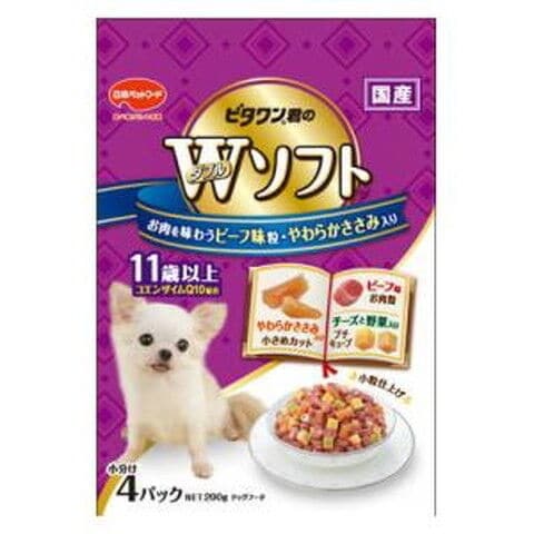 日本ペットフード ビタワン君のWソフト 11歳以上 お肉を味わうビーフ味粒・やわらかささみ入り 200g VWソフト11サイビ-フササミ200G 【返品種別A】