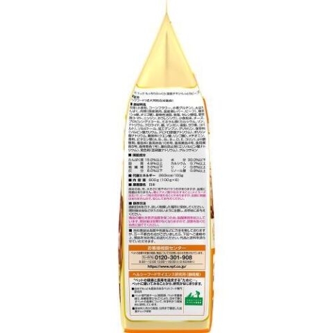 たんぱく質15.0%以上、脂質4.8%以上、粗繊維3.0%以下、灰分8.0%以下、水分30.0%以下、カルシウム0.7%以上、リン0.6%以上、リノール酸0.8%以上