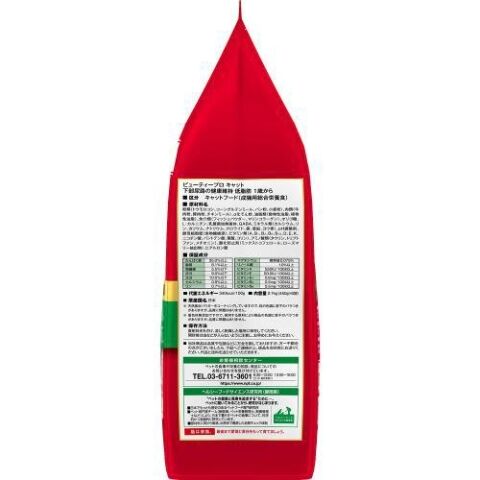 ■原材料:穀類(トウモロコシ、コーングルテンミール、パン粉、小麦粉)、肉類(牛肉粉、豚肉粉、チキンミール)、α化でん粉、油脂類(動物性油脂、植物性油脂)、魚介類(フィッシュパウダー、マリンコラーゲン)、オリゴ糖、L‐カルニチン、乳酸菌加熱菌体、GABA、ミネラル類(カルシウム、リン、カリウム、ナトリウム、クロライド、銅、亜鉛、ヨウ素)、pH調整剤、酵母細胞壁(食物繊維源)、ビタミン類(A、B1、B2、B6、B12、D、E、K、ニコチン酸、パントテン酸、葉酸、コリン)、アミノ酸類(タウリン、トリプトファン、メチオニン)、酸化防止剤(ミックストコフェロール、ローズマリー抽出物)、ヒアルロン酸