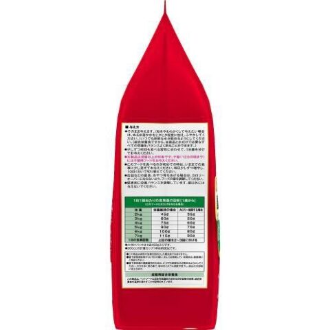 ■保証成分:たんぱく質35.0%以上、脂質8.1%以上、粗繊維5.5%以下、灰分9.0%以下、水分10.0%以下、カルシウム0.9%以上、リン0.7%以上、リノール酸1.0%以上、ビタミンA:550IU/100g以上、ビタミンE:50.0IU/100g以上、ビタミンB1:0.6mg/100g以上、ビタミンB2:0.5mg/100g以上、ビタミンB6:0.5mg/100g以上、マグネシウム:標準値0.075%