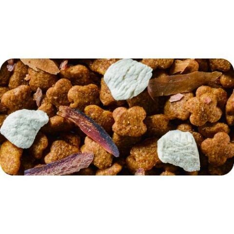 たんぱく質27.0%以上、脂質9.0%以上、粗繊維5.5%以下、灰分9.0%以下、水分10.0%以下、カルシウム0.9%以上、リン0.8%以上、マグネシウム0.11%(標準値)