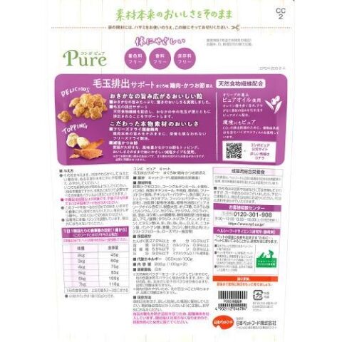 日本ペットフード コンボ ピュア キャット ドライ 毛玉排出サポート まぐろ味・鶏肉・かつお節添え 200g コンボピユアCケダマ200G 【返品種別B】