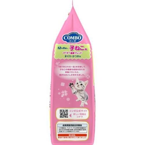 ・まぐろとかつお味のカリカリ粒と、お魚のすり身で作ったサクッと食感チップの2つの食感が楽しい子ねこ用。