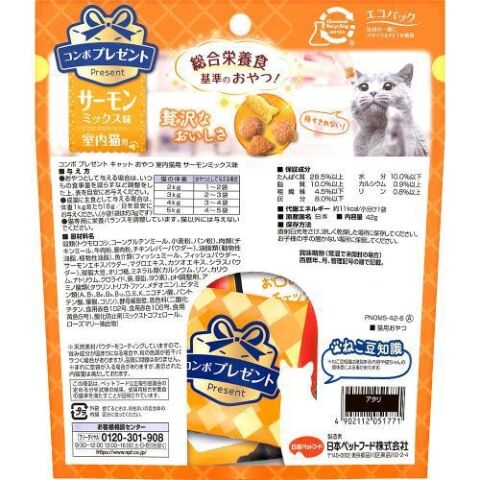 日本ペットフード コンボ プレゼント キャット おやつ 室内猫用 サーモンミックス味 42g(約3g×14袋) コンボPCシツナイサ-モンミツクス42 【返品種別B】
