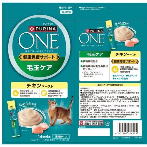 ネスレ日本 ピュリナワンキャット おやつ 毛玉ケア チキンペースト 14g×4本 POネコケダマチキンペ-スト4ホン 【返品種別B】