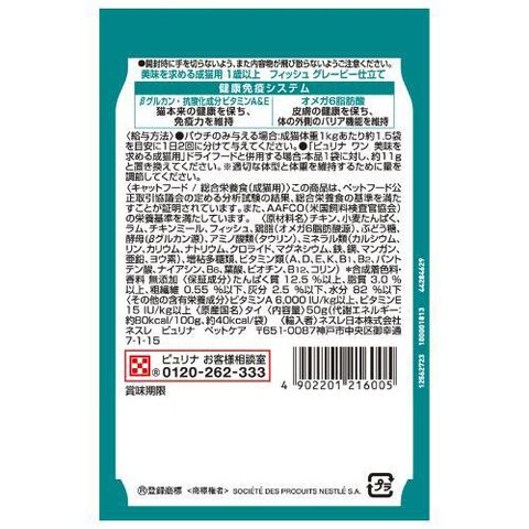 ネスレ日本 ピュリナワンキャット パウチ 美味を求める成猫用 1歳以上 フィッシュグレービー仕立て 50g POネコPビミ1サイフイツシユ50G 【返品種別B】