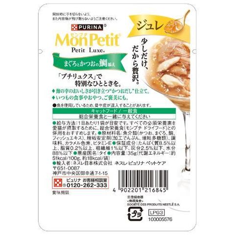 ネスレ日本 モンプチ プチリュクス ジュレ まぐろとかつおの鯛添え 35g 12588772PLジユレタイソエ35 【返品種別A】