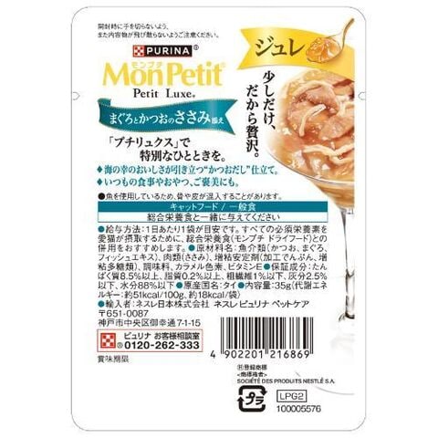 ネスレ日本 モンプチ プチリュクス ジュレ まぐろとかつおのささみ添え 35g 12588755PLジユレササミ35G 【返品種別B】