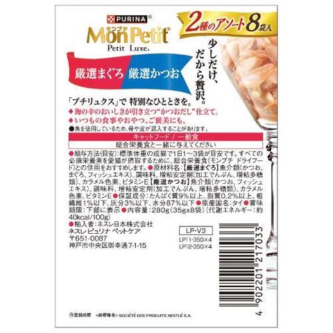 ネスレ日本 モンプチ プチリュクスパウチ 2種のアソート 厳選まぐろ&厳選かつお 280g(35g×8袋) 12591581PLPマグカツ280G 【返品種別B】