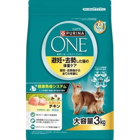ネスレ日本 ピュリナワン 避妊・去勢した猫の体重ケア チキン 3kg 避妊・去勢後から全ての年齢に POネコドライヒニンネコチキン3KG 【返品種別B】