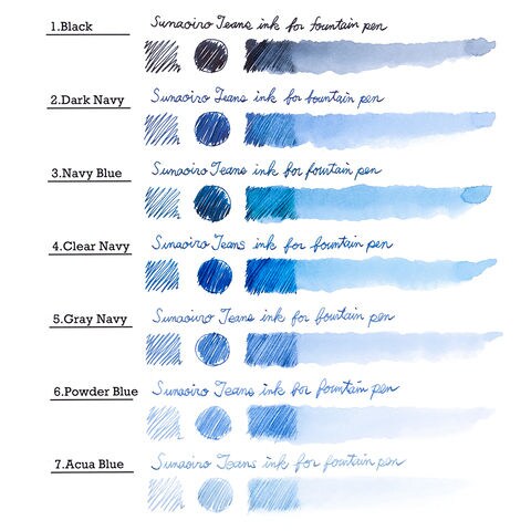 ◆ジーンズをイメージした万年筆用インク「すなおいろ・ジーンズインク」色相と彩度のぶれが少なく、豊かな表現力を備えた水性染料インク