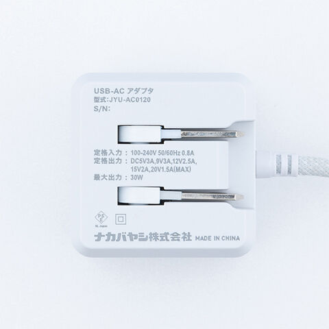 ナカバヤシ GaN 30W PD充電器 Type-Cケーブル一体型 2m (ホワイト) JYU-AC0120W 【返品種別A】