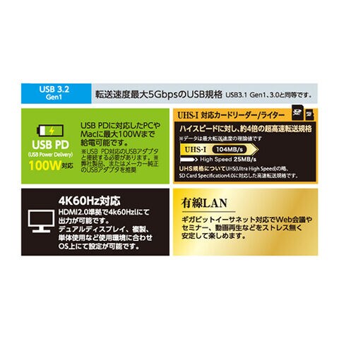 ◆LAN/SDカード/USB Type-A×2/HDMI/USB PD対応