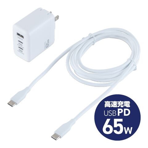 ナカバヤシ 【Joshin オリジナル】GaN 65W USB PD充電器 ケーブルセット(ホワイト) MCO ミヨシ JYU-ACJ0165CCW 【返品種別A】