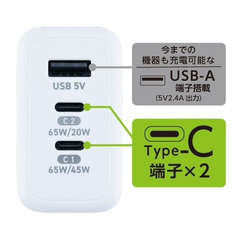 またType-C2ポート同時使用時45W+20Wでの組み合わせでお使いいただけます。