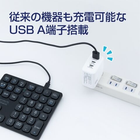 USB PD非対応の機器も充電可能なUSB A端子搭載。