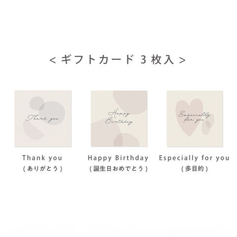 感謝を伝えたいときの「Thank You」、誕生日プレゼントに最適な「Happy Birthday」、どんなときにも使える「Especially for you」の3種類で、贈るシーンに合わせて選べます。