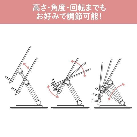 ◆横方向に360°回転し、上下の高さ、前後の角度を調整できる