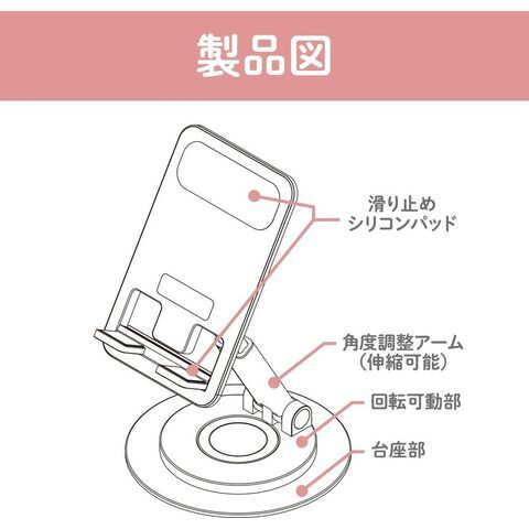 ◆スマートフォンの設置面は滑り止めシリコンパッドがついており、縦向き、横向き、どちらにも設置可能