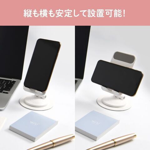 ◆スマートフォンの設置面は滑り止めシリコンパッドがついており、縦向き、横向き、どちらにも設置可能