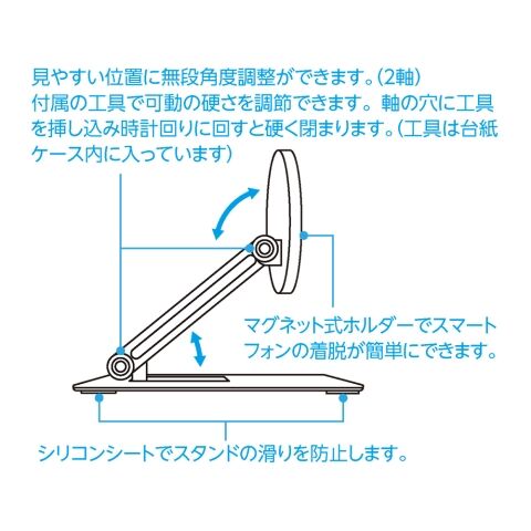 スタンド本体の可動部を折りたたむことで、コンパクトに収納が可能です。