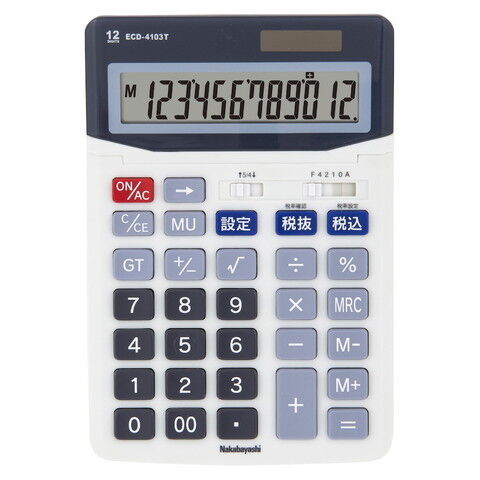 - 機能:12桁表示/早打ち対応/2つの電源/チルト機能/税計算