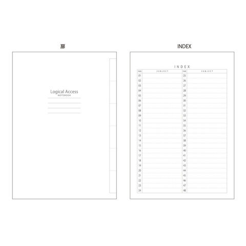 ◆情報が検索しやすいノート。インデックスページ、ノンブル、小口見出しで検索性を高めたノート。