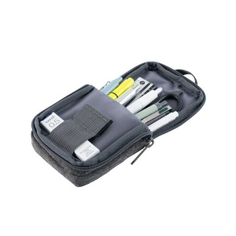 フラップ部に小物収納スペースがあるため、ペンケース内部で埋もれてしまいがちな消しゴムなどの小物を取りやすい位置に固定しておくことが出来ます。