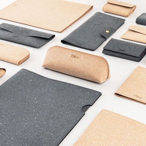 CleLeシリーズは、皮革製品を製造する際に出た革の端材を樹脂と固めてシート状にした、皮革繊維再生複合材を使用しています。