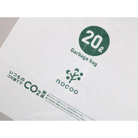 ◆ゴミ袋本体には20Lの容量表記とnocoo(ノクー)のロゴが印刷されています。