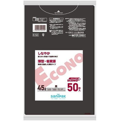 日本サニパック E52 エコノプラス45L 黒 50枚 ゴミブクロクロ50P 【返品種別A】