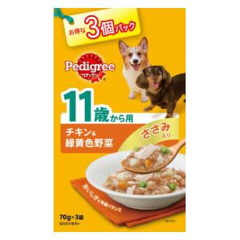 マースジャパンリミテッド ペディグリー 11歳から用 チキン&緑黄色野菜とささみ入り(パウチ)70g×3袋 P11サイチキンヤサイ3P 【返品種別B】