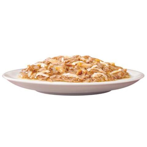 ◆抜群のおいしさに進化! 厳選されたまぐろ・かつお・ささみをカルカン特製だしで煮込み、ジューシーなゼリー仕立てにしました。