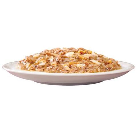 ◆抜群のおいしさに進化! 厳選されたまぐろに平目を加えカルカン特製だしで煮込み、ジューシーなゼリー仕立てにしました。
