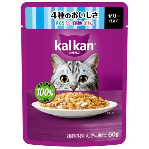 マースジャパンリミテッド カルカン パウチ 2種のセレクション 4種のおいしさ まぐろ・たい・かにかま・ささみ入り 4種のおいしさ まぐろ・たい・白身魚・さけ入り 480g(60g×8袋) KP315タイカニカマ/タイサケ480 【返品種別A】