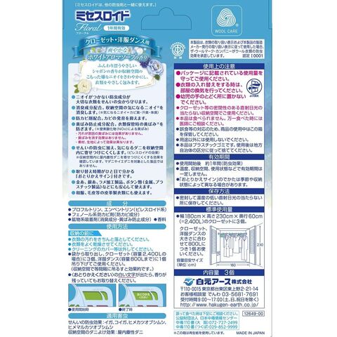 白元アース ミセスロイドフローラル クローゼット・洋服ダンス用 3個入 1年防虫 ホワイトアロマソープの香り Mフロ-ラルCLヨウタンス3コソ-プ 【返品種別A】