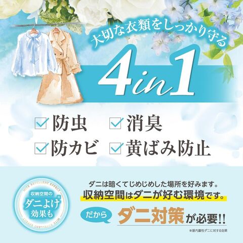◆せんいの防虫に加え、気になるダニを収納空間内に寄せつけにくくします。(ピレスロイドの効果)