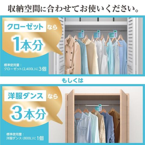 ◆消臭成分配合。収納空間の気になるニオイ※を消臭します。(※気になるニオイ=カビ臭・汗臭・体臭)