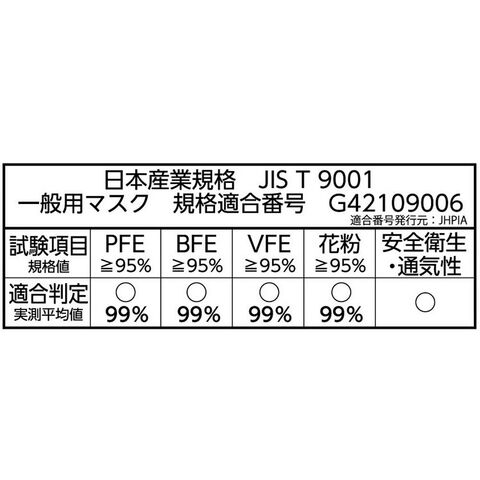 ・0.1μmの微粒子:99%カット・・・PFE試験(0.1μm)