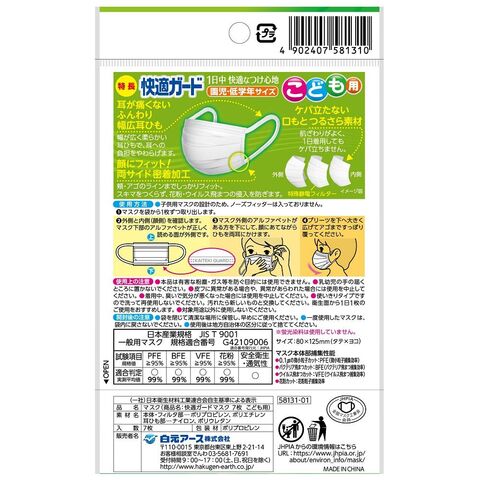 白元アース 快適ガードマスク こども用7枚入 カイテキガ-ドマスク コドモ 7P 【返品種別A】