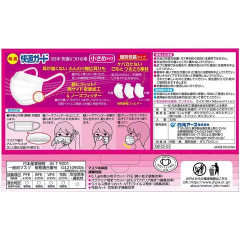 白元アース 快適ガードマスク 小さめサイズ 30枚入 カイテキガ-ドマスク チイサメ30P 【返品種別A】