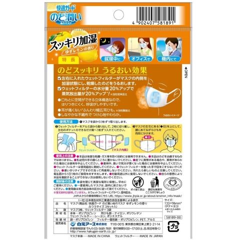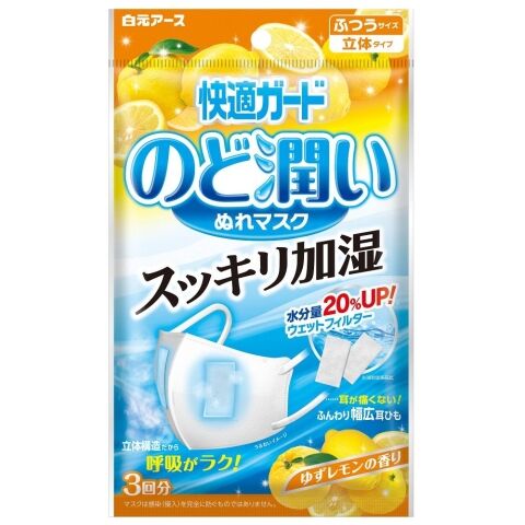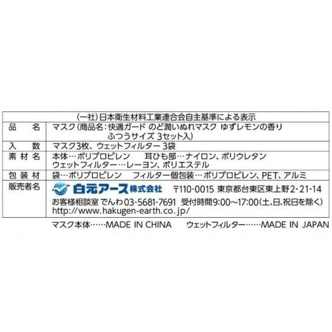 白元アース 快適ガード のど潤いぬれマスク ゆずレモンの香り ふつうサイズ 3セット入 STFオイルクリアフイルム75 【返品種別A】
