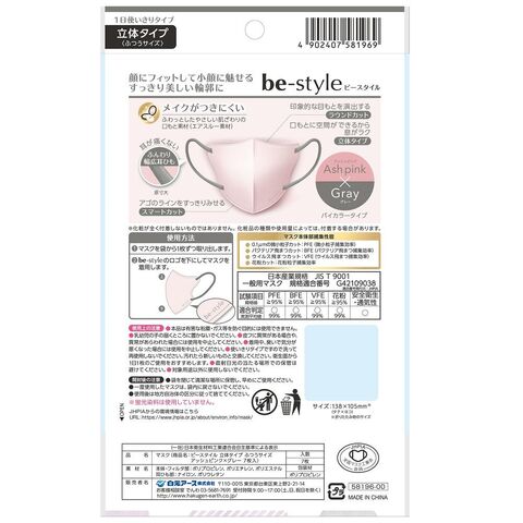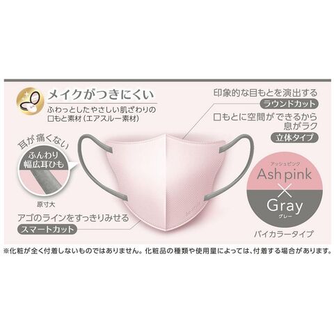 ◆マスクの色:アッシュピンク、耳ひも:グレー。