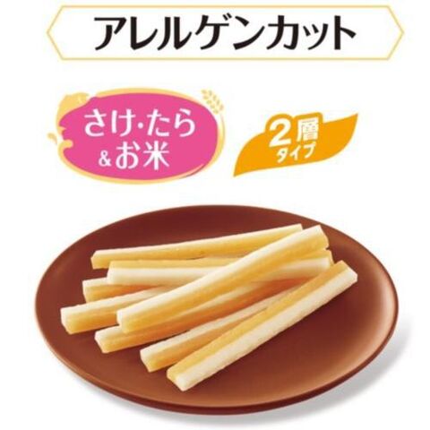 ■原材料:たら、米粉、さけ、馬鈴薯でんぷん、植物性油脂、フィッシュオイル:DHA・EPA源、ソルビトール、グリセリン、リン酸塩(Na)、ミネラル類(カルシウム)、保存料(ソルビン酸K)、酸化防止剤(ミックストコフェロール)