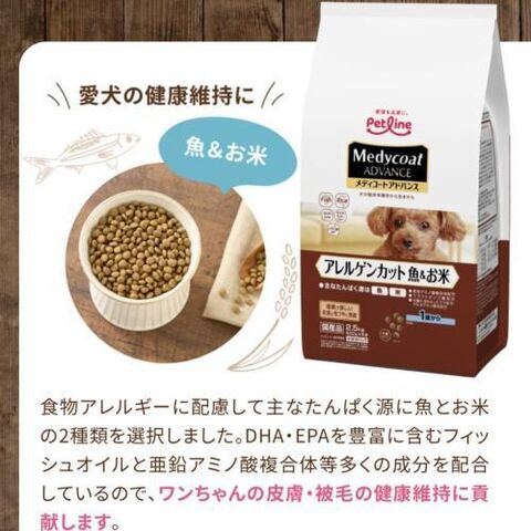 ◆主なたんぱく源として魚と米を使用(牛肉・乳製品・小麦・鶏卵・鶏肉・大豆は食物アレルゲンに敏感な愛犬に配慮して、使用していません)