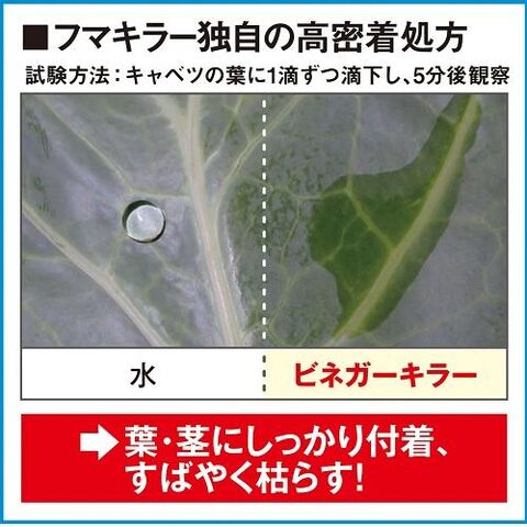 フマキラー独自の高密着処方で葉茎にしっかり付着し、さらに業界最高濃度※1のお酢成分がすばやい効果を発揮。